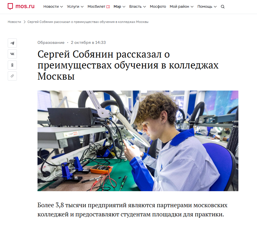 Сергей Собянин рассказал о преимуществах обучения в колледжах Москвы 02.10.2025