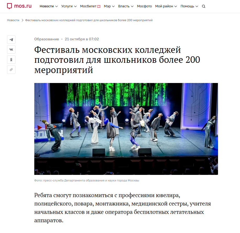 Фестиваль московских колледжей подготовил для школьников более 200 мероприятий