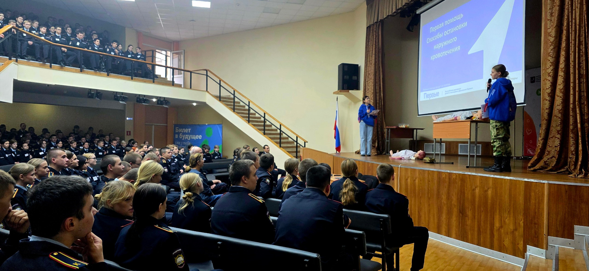 Мастер-класс, организованный активистами первичного отделения "Первые ЮК" под руководством советника директора Е.С. Абрамовой прошел в рамках Всероссийского проекта по оказанию первой помощи. Активисты, прошедшие обучение на инструкторов по оказанию первой помощи от Движения Первых, рассказали собравшимся о том, как действовать в чрезвычайных ситуациях. В качестве экспертов на мероприятие были приглашены преподаватели: В.И. Володин, Т.Н. Гаврикова и В.А. Михайлин. Команды курсантов подробно изучив алгоритм действий в различных экстренных ситуациях, закрепили знания на практике. В ходе мастер-класса были рассмотрены следующие случаи, когда человек находится без сознания, но имеет стабильное дыхание и пульс — участники научились правильно оценивать состояние пострадавшего и оказывать первую помощь. А также случаи остановки дыхания — курсанты освоили технику сердечно-лёгочной реанимации.