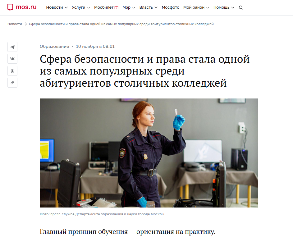 Сфера безопасности и права стала одной из самых популярных среди абитуриентов столичных колледжей