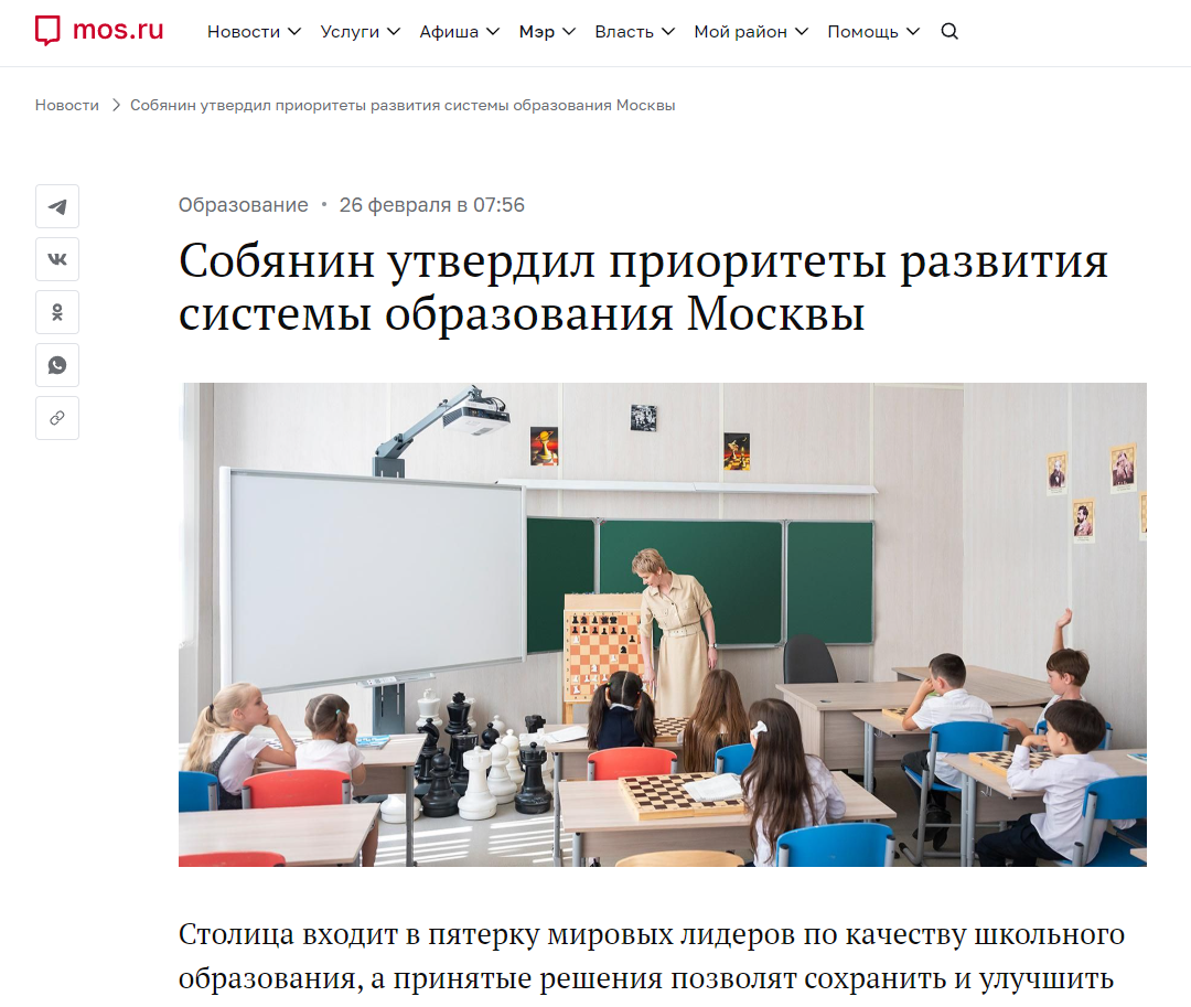 Собянин утвердил приоритеты развития системы образования Москвы 26.02.2025
