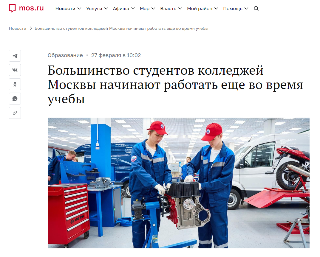 Большинство студентов колледжей Москвы начинают работать еще во время учебы 27.02.2025