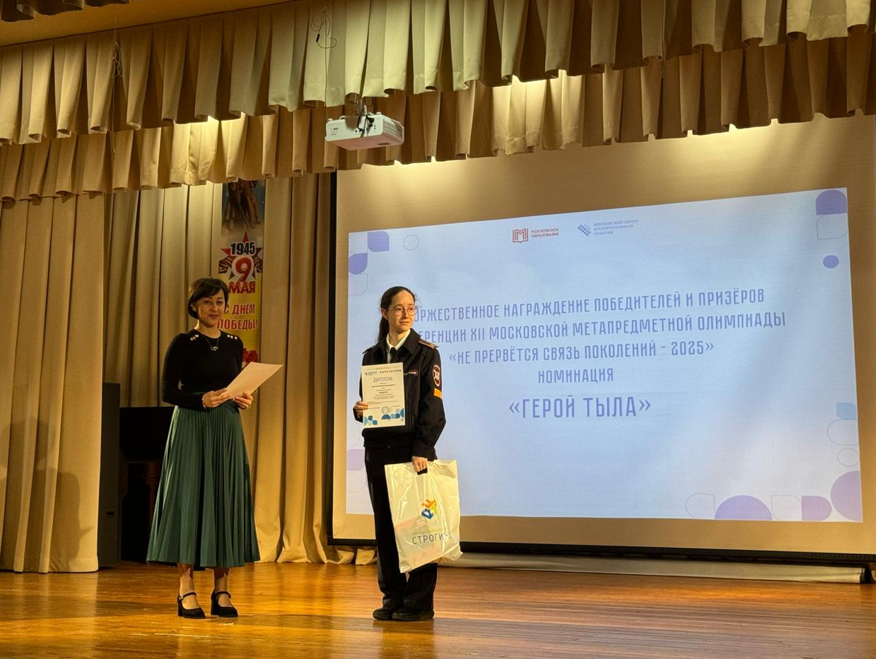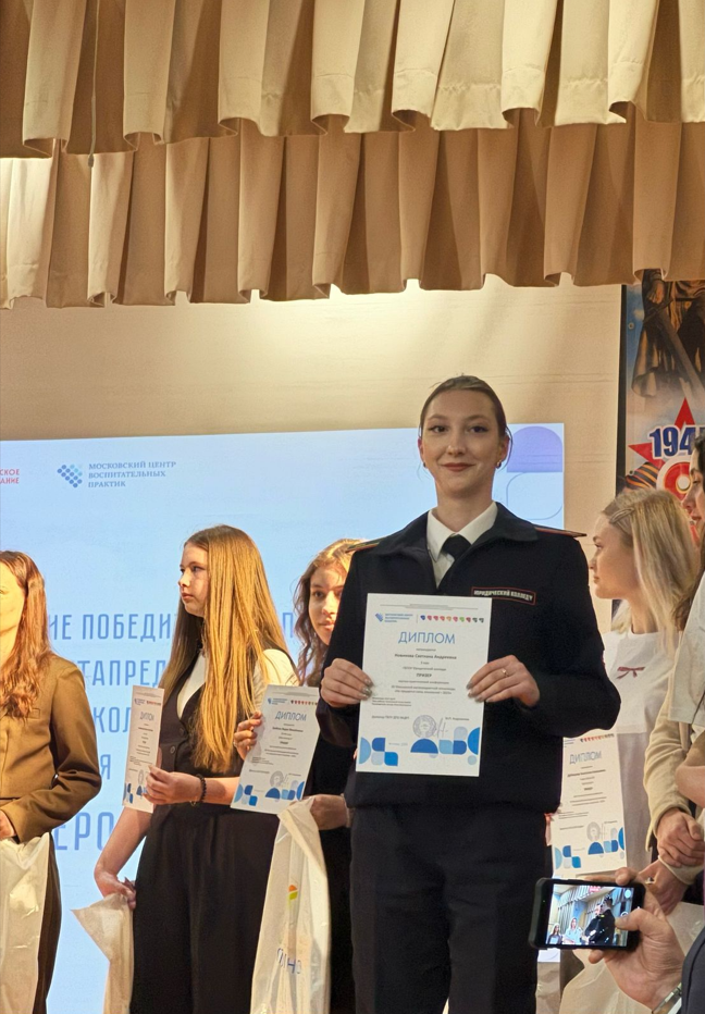 28 апреля 2025 года курсанты Юридического колледжа приняли участие в церемонии награждения победителей заключительного этапа XII Московской метапредметной олимпиады "Не прервется связь поколений - 2025"