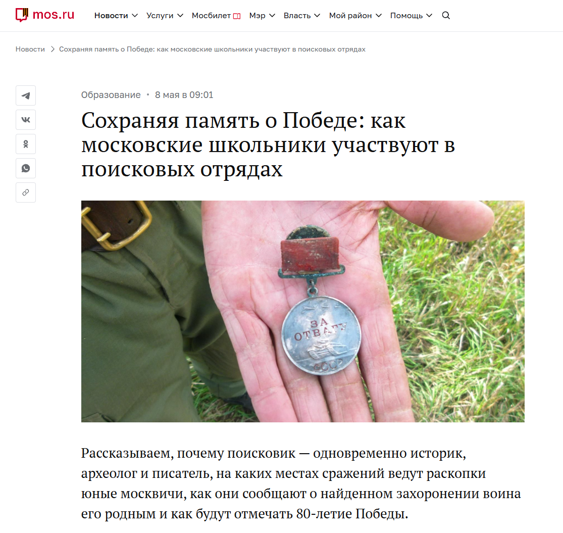 Рассказываем, почему поисковик — одновременно историк, археолог и писатель, на каких местах сражений ведут раскопки юные москвичи, как они сообщают о найденном захоронении воина его родным и как будут отмечать 80-летие Победы.