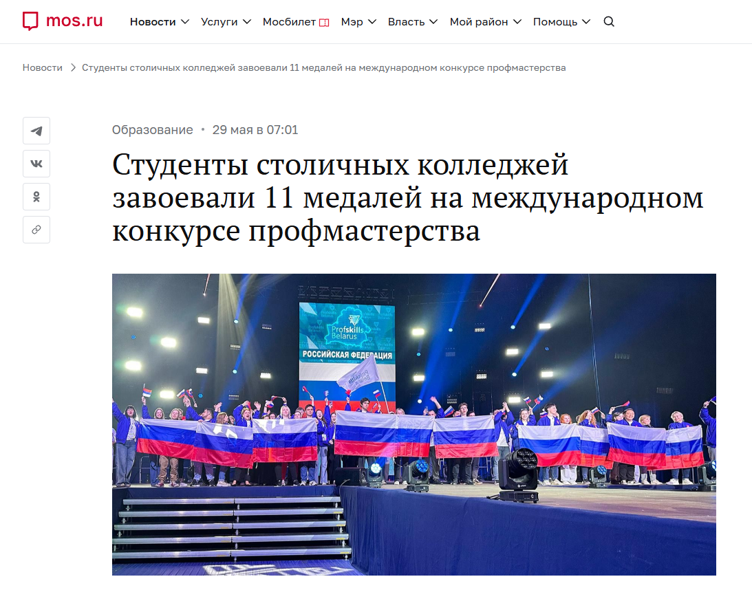 Студенты московских колледжей завоевали 11 медалей на VI Международном конкурсе профессионального мастерства ProfSkills Belarus 2025. Это треть от общего числа наград сборной России, сообщили в пресс-службе столичного Департамента образования и науки.