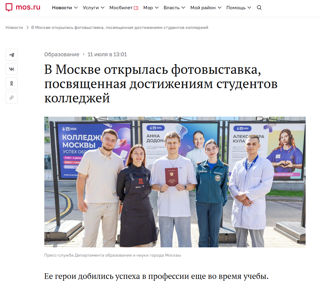 В Москве открылась фотовыставка, посвященная достижениям студентов колледжей