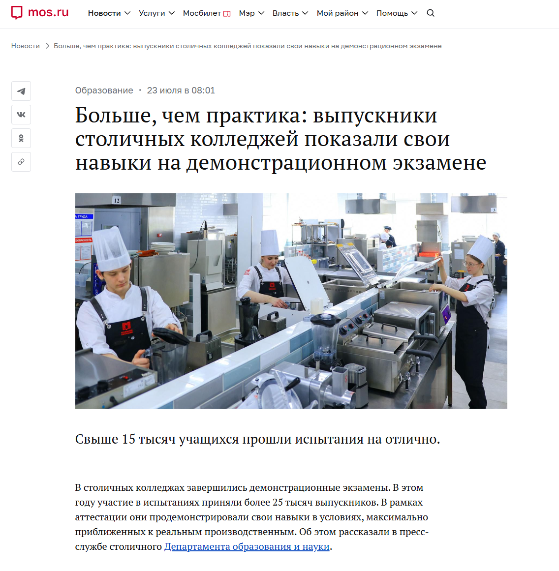 В столичных колледжах завершились демонстрационные экзамены. В этом году участие в испытаниях приняли более 25 тысяч выпускников. В рамках аттестации они продемонстрировали свои навыки в условиях, максимально приближенных к реальным производственным. Об этом рассказали в пресс-службе столичного Департамента образования и науки.