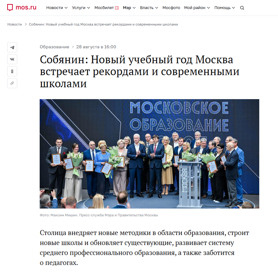 Собянин: Новый учебный год Москва встречает рекордами и современными школами